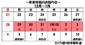 年末年始お休みのコンタクトレンズ発注についてのお知らせ