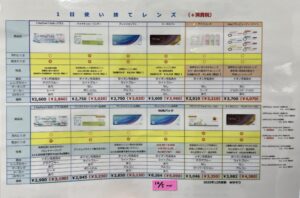 スタッフがそれぞれのコンタクトレンズの特徴やお値段を説明させていただきます。