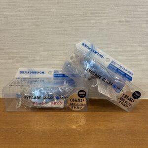 当院では、写真のような保護メガネを取り扱っています。Sサイズ、Mサイズの2種類です。